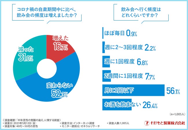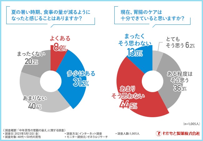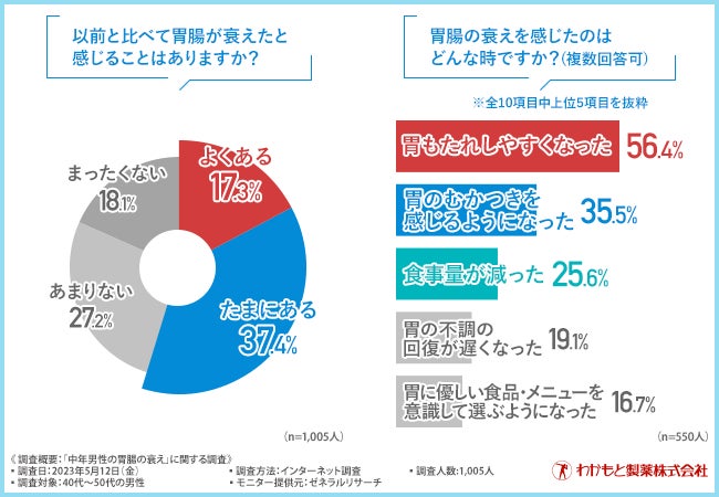 そこで、胃と腸のお薬『強力わかもと』(https://www.wakamoto-pharm.co.jp/health_si/labo/)を販売するわかもと製薬株式会社は、40代〜50代の男性を対象に、「中年男性の胃腸の衰え」に関する調査を実施しました。