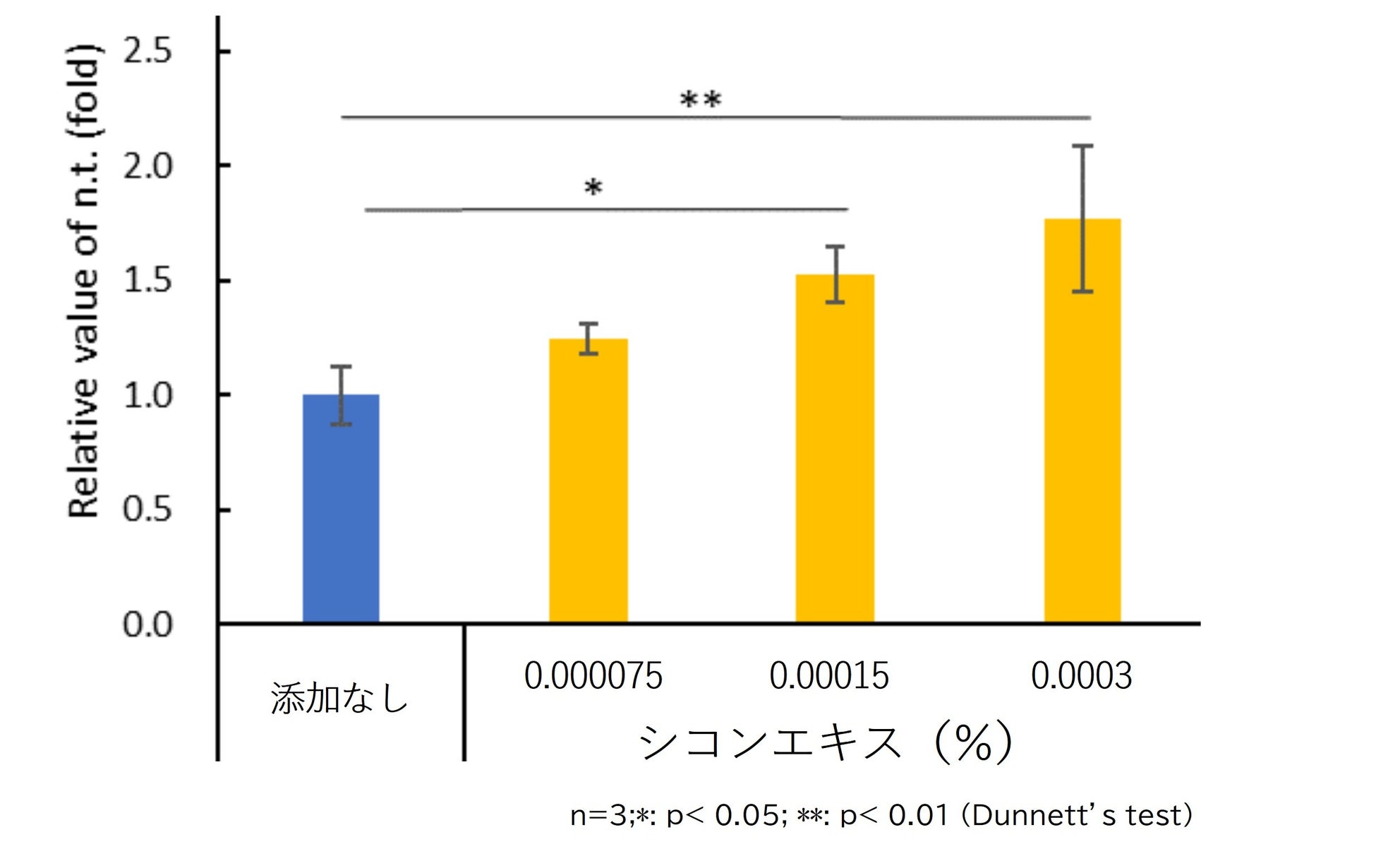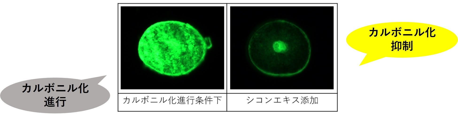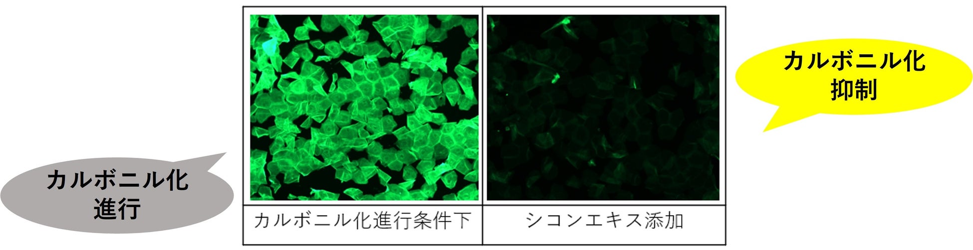 角層のカルボニル化進行試験において、シコンエキスを添加することでカルボニル化の進行を抑制することを確認しました。