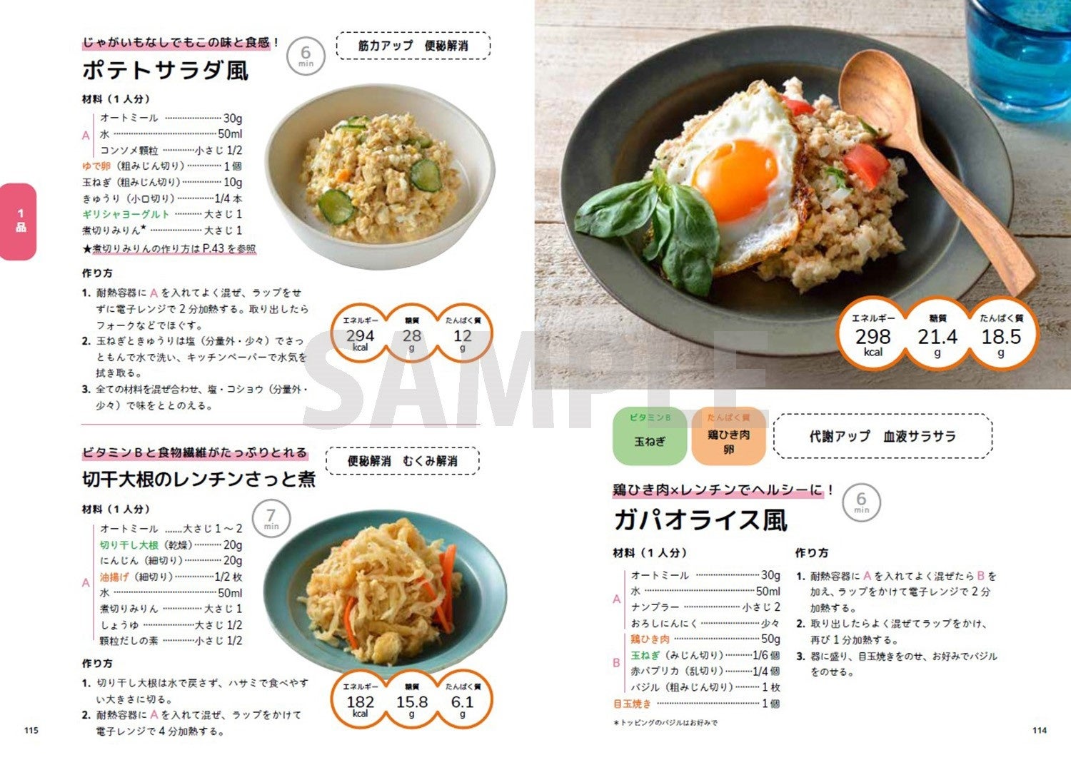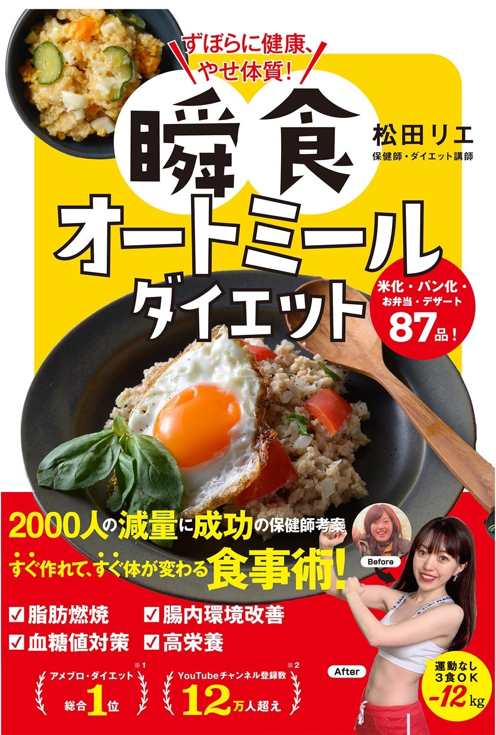 “瞬食”とは松田リエさんが提唱する、「すぐに実践できてやせる食習慣」のこと。たんぱく質とビタミンB群を意識した食材選びや、ずぼらでも続けられる時短食材の活用などを推奨しています。本書でそんな“瞬食メソッド”と相性の良いオートミールを使った主食・おかず・汁もの・デザートなどのレシピが満載です。