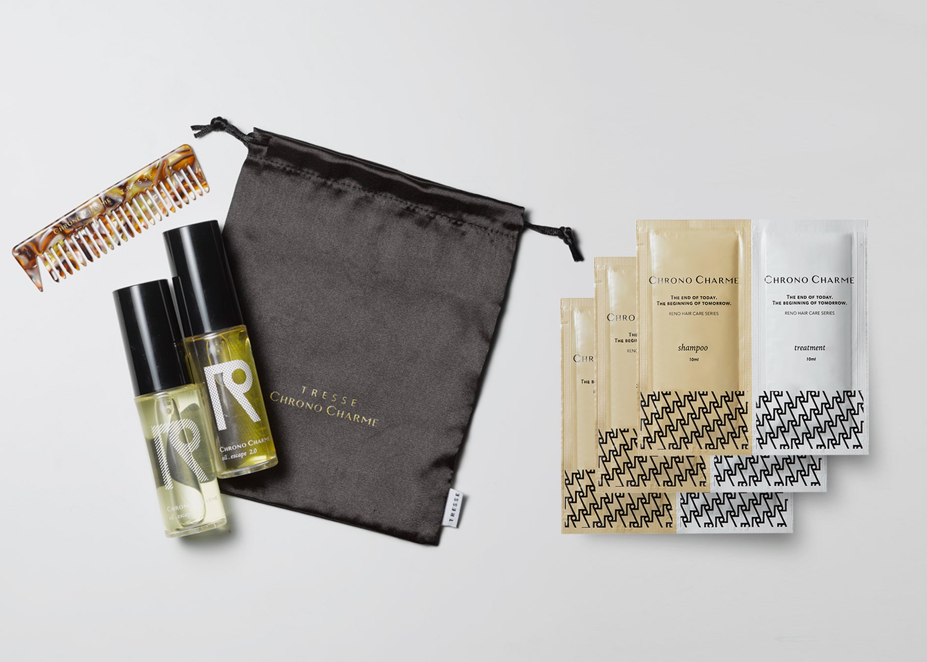 CHRONO CHARME × TRESSE original comb + oil_escape 1.0 + oil_escape 2.0 + shampoo & treatment trial kit 3set