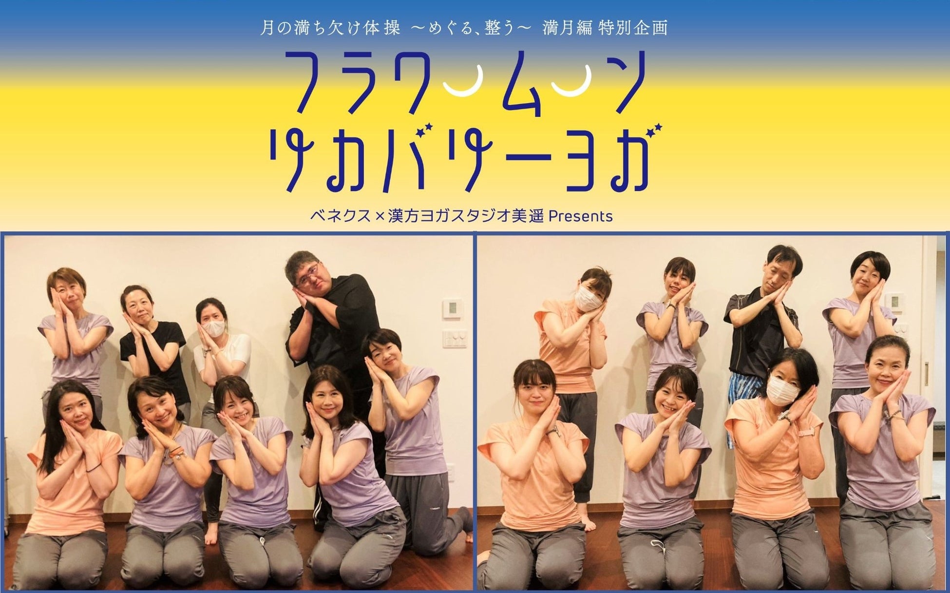 そこで今回、いつも参加してくださるお客様に加え、「ヨガ」や、「ベネクス」、「リカバリーウェア」に興味があるという方にも、ゴールデンウィーク明けも元気に過ごしてほしいとの思いで、当社初めてとなるリアルヨガイベント『月の満ち欠け体操~めぐる、整う~満月編 特別企画 「フラワームーン リカバリーヨガ」』を開催しました。