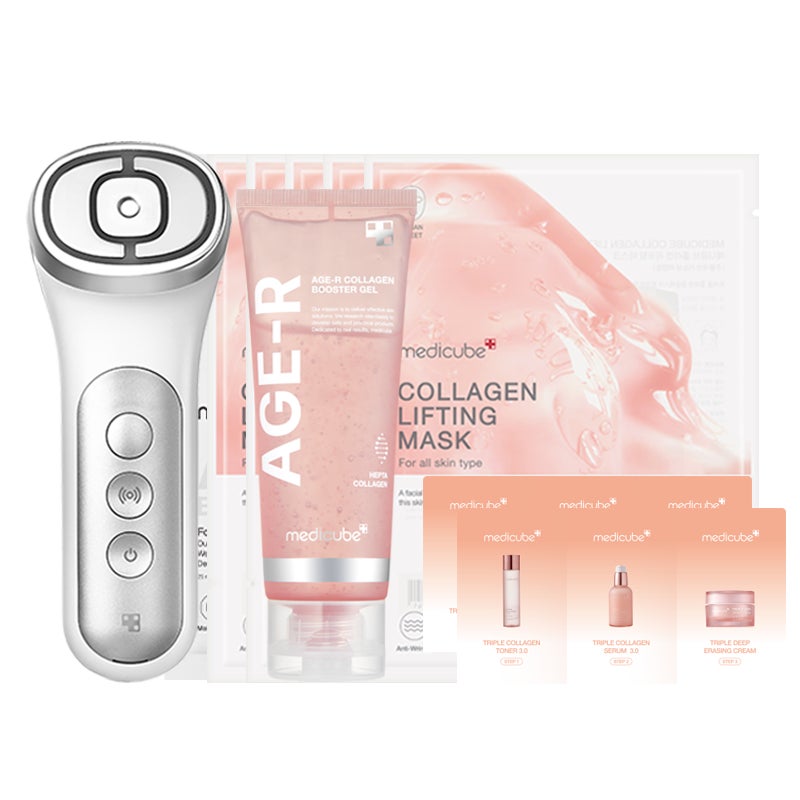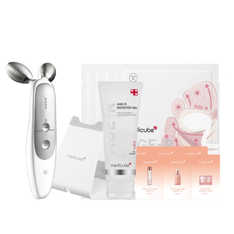 「エージーアール(Age-R)」はメディキューブが開発した最初の美顔器です。中周波(EMS)を利用した小顔ケア美顔器で、気になる部分を引き締め、フェイスラインのケアを助けます。筋肉を動かし、普段使えていない表情筋などを運動させて顔の筋肉を鍛えることで、見た目年齢の引き下げ効果を導きます。