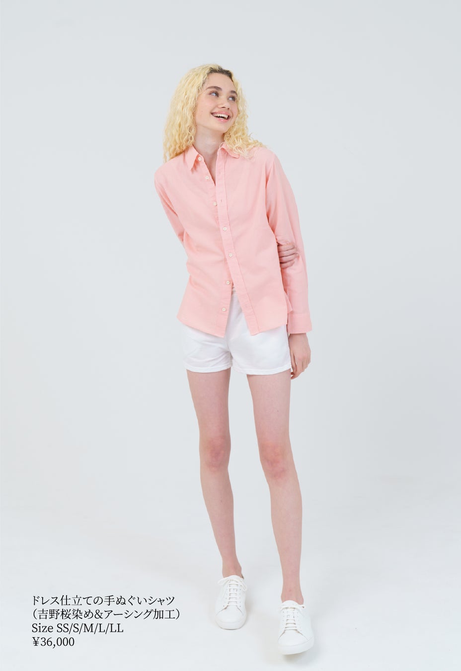①ドレス仕立ての手ぬぐいシャツ(吉野桜染め&アーシング加工)