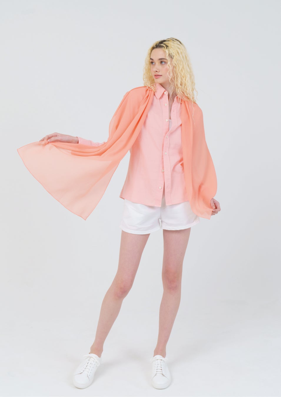 吉野の千本桜が織りなす春の風景を纏い自然と共鳴するアーシング加工のシルクシフォンストール。桜の花びらのように優雅に揺れるその姿は、あなたをエレガントに彩ります。自然の力を身に纏いながら、日々の生活を豊かに彩る一品。心地よさと美しさを追求したこのストールで、あなたの日常に新たな風を。