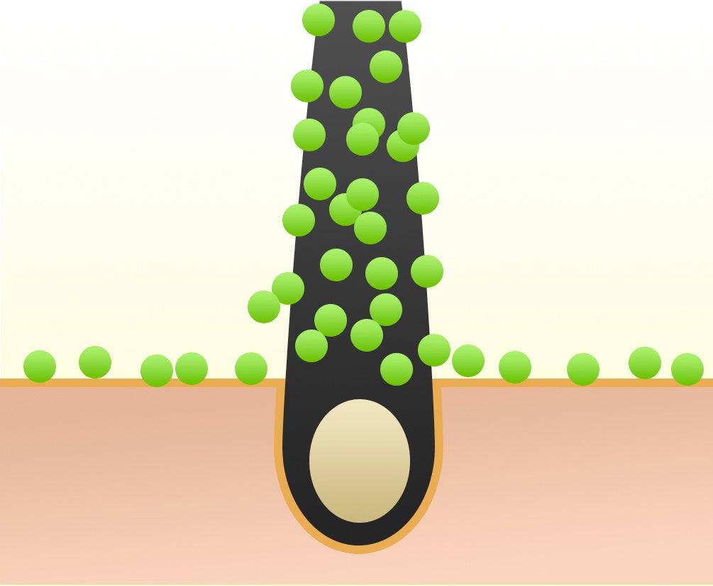 このナノサイズのナノカプセルにより、頭皮・頭髪のうるおいを保ちます。