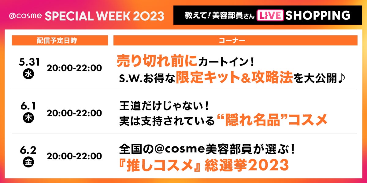 アーカイブ:https://www.cosme.net/flagship/liveshopping/archive/