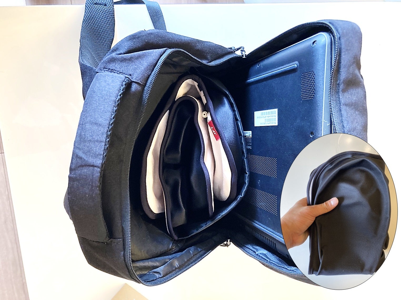 首を頭部を包み込む大きな設計ですが、使わない時は空気を抜く事で小さくコンパクトに収納可能です。軽くてビジネスリュックやトラベルバックに入れて簡単に持ち運べるので旅行や出張先でもいつも睡眠環境を作り出すことが出来ます。