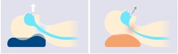 顎が上げる事で「気道確保」にちかい状態で呼吸をサポートします。自然なカーブを維持する事で呼吸が楽になり、心地よい眠りに誘います。