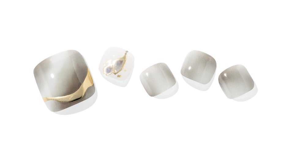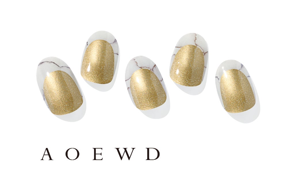 人気ネイルサロンとのコラボならではのユニークなデザイン。グレーのマーブルネイルに大胆にゴールドを配置し、モダンでスタイリッシュな魅力で視線を集めます。アクセサリー感覚で使え、華やかなシーンにもおすすめです。
