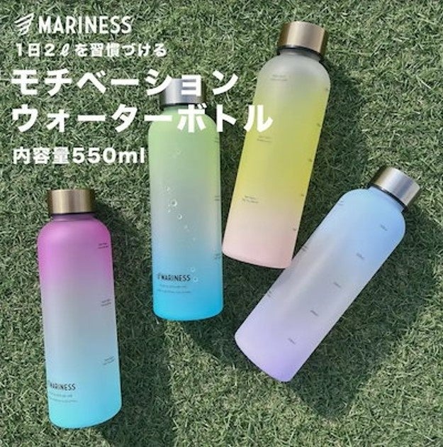 「健康のため、1日2リットルの水を飲むことを習慣にしたい」そんな思いから開発した、おしゃれ且つ、シンプルなデザインのMARINESSのロゴ入りウォーターボトル。
