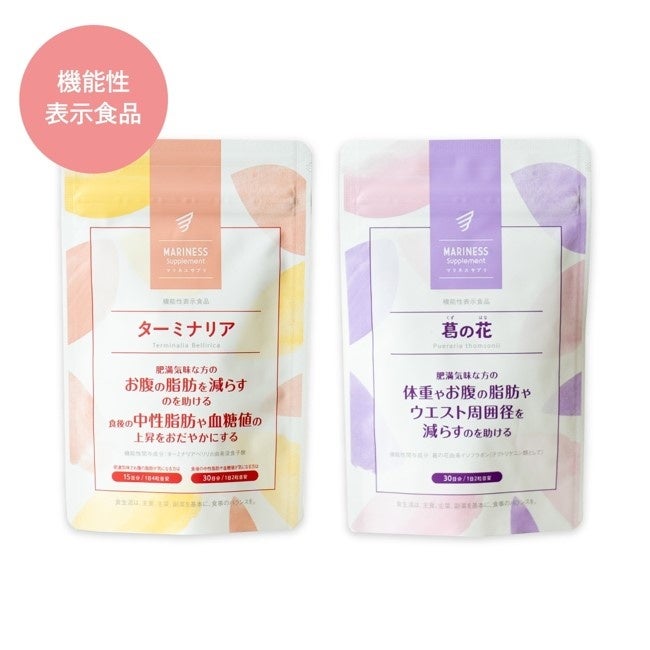 脂肪になりにくい食生活をサポートする「ターミナリア」とお腹の脂肪にピンポイントでアプローチする「葛の花」の2種がセットに!