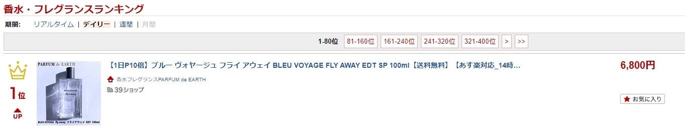 6月1日付けで楽天香水デイリーランキング初登場で堂々の第1位を獲得!