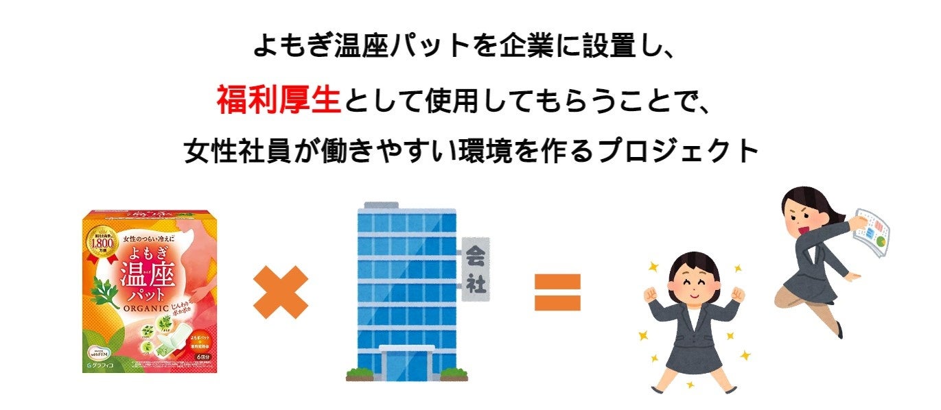女性の不調をケアする温熱パット「よもぎ温座パット」のオフィス向けパッケージを、企業向けに販売。 2023年2月から営業を開始し、2023年6月現在、現在1社に導入されています。