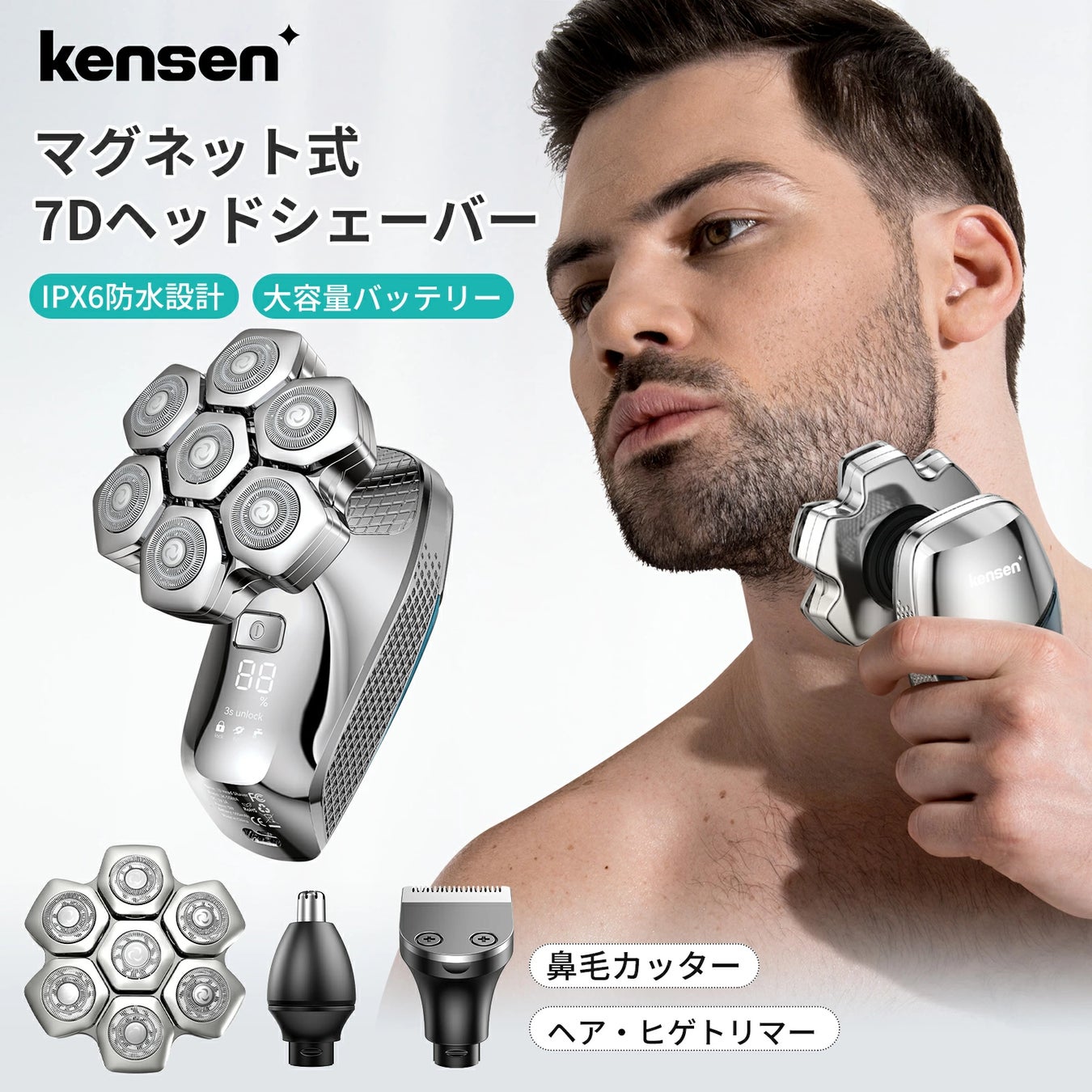 フローティングデザインを採用し、ヘッドが上下・左右に動けます。さらに、7つ柔軟なヘッドを搭載し、アゴ下や頬の凹凸へ均一に圧力がかかりやすく、丸い刃が360°から髭を捕えるため、生えた髭にもしっかりと密着。クセ髭も効率的にシェービングします。肌が弱い、髭が硬いといった人、敏感肌におすすめ。