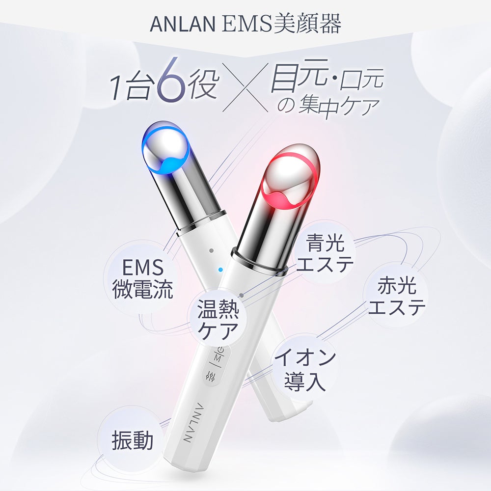 製品特長:温熱ケアと振動、イオン導入、EMSの強弱と 2色光エステが自由に変えられるので、自宅で自分の気分に合わせて楽しめる。 毎日10分で目元・口元の印象を変えます!