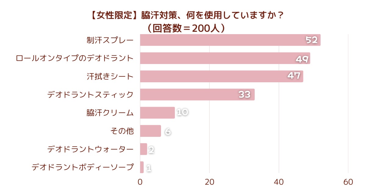 【女性限定】脇汗対策、何を使用していますか?」とアンケート調査した結果、1位は『制汗スプレー』でした。