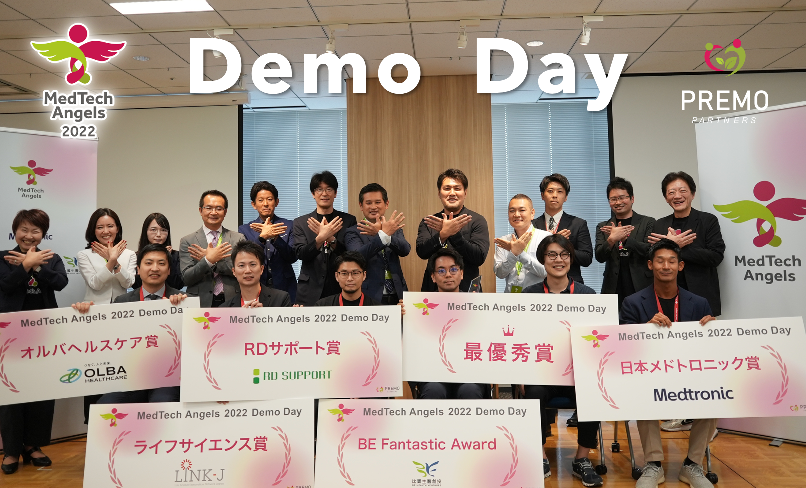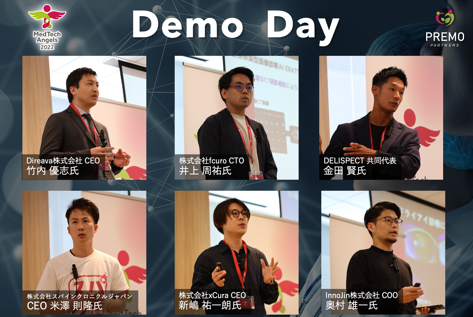 プレモパートナーは2019年から医療テクノロジー開発のスタートアップ企業を対象にした支援を行っている。なかでもMedTech Angelsは、メドテック分野のアイデアから製造販売に至る各開発プロセスの戦略を専門家を交えながらブラッシュアップすることを目的とした、国内初のメドテック特化のアクセラレーションプログラムである。事業、薬事、保険、QMSといったメドテックスタートアップの核となる戦略について、選抜された6社が5ヶ月かけてブラッシュアップした。本プログラムの集大成として、DemoDayでは各スタートアップから練り上げられたピッチが披露された。また、講演会、座談会、交流会など、スタートアップ・事業会社・投資家など多岐にわたる参加者の交流を促した。プロジェクトリーダーである中山正光は、オープニングで「メドテック開発は総力戦です。この場に集った皆さんと日本のメドテックコミュニティをここから作っていきたい」と熱く参加者に呼びかけた。