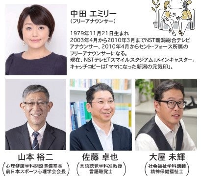 第二弾として、2023年6月18日(日)、【「心理」×「コミュニケーション」~プロに学ぶ極意!他者に気持ちを伝えるために~】をテーマに、フリーアナウンサーの中田エミリーさんをゲストにお招きし、本学心理健康学科準備室長 山本裕二教授、言語聴覚学科 佐藤卓也准教授、社会福祉学科 大屋未輝講師とのトークイベントを開催いたします。