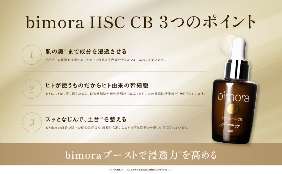 2023年6月1日(木)、ユニセックスコスメブランド「BimoRa」が先行型美容液「HSC CB美容液」の販売を開始しました。ヒト幹細胞培養液(*1)の配合やリポソーム技術の採用などにより、先行型美容液として高い品質となっています。保湿効果はもちろんお肌のキメを整え、はりやツヤを与えます。お肌に優しい成分を使用しているので、幅広い肌質の方にお試しいただける製品です。当製品はお得な定期コースも用意しています。定期コースの場合、定価価格が7,400円(税込)のところ初回2,950円(税込)、2回目以降6,660円(税込)で購入することが可能です。