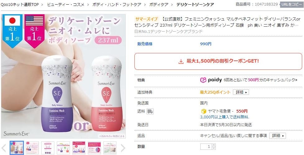 当社にて2013年よりデリケートゾーンケアの重要性を伝える活動を続けている 『サマーズイブ』シリーズの、計7商品を販売いたします。
