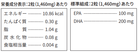 〇2粒(1,460 mg)あたりの栄養成分と標準組成