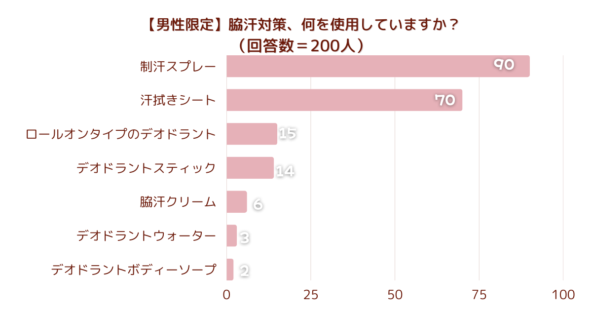 【男性限定】脇汗対策、何を使用しますか?」とアンケート調査した結果、1位は『制汗スプレー』でした。