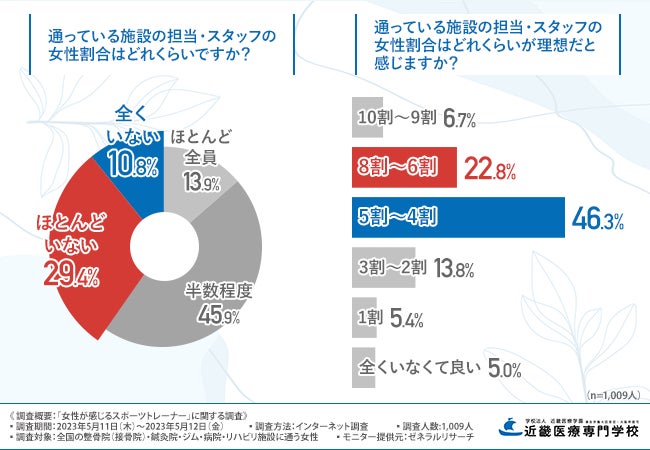 - 接骨院やジムなどの施設に在籍する女性スタッフ割合の理想と現実