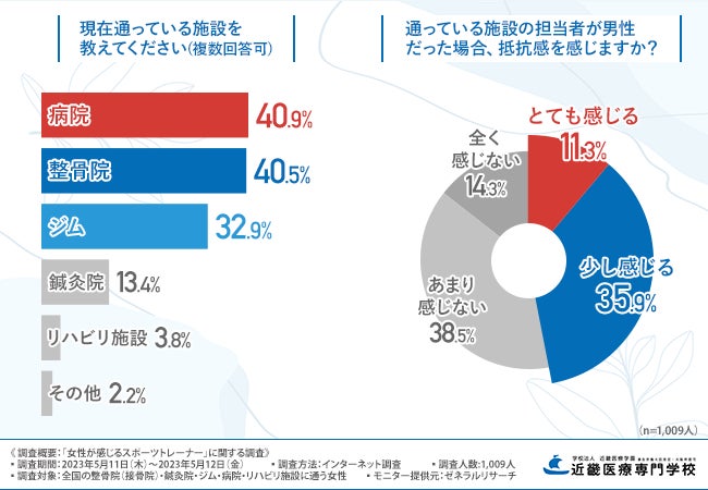 - 「接骨院やジムなどの施設に男性スタッフがいたら抵抗感を感じる」と答えた女性は半数近くも