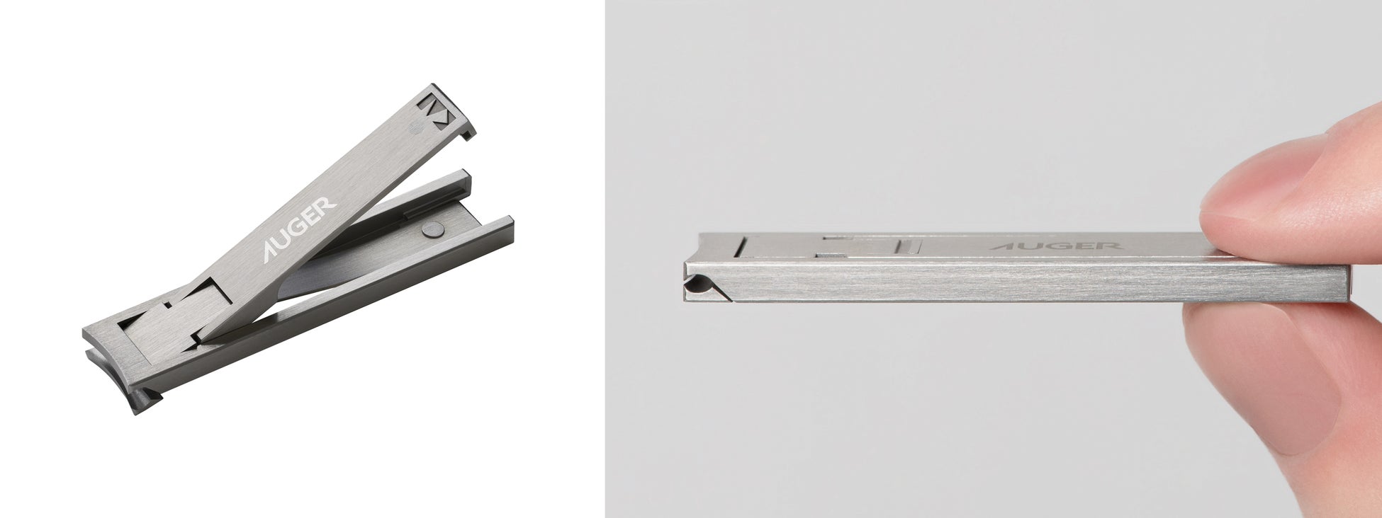 「身だしなみを整える時間」をより豊かで、より心地よいものへと導くべく誕生したグルーミングツールブランド「AUGER」より、この度縦60mmx横13mmx厚さ3.9mmと非常にコンパクトでスタイリッシュなデザインの「ツメキリ Leaf」が新登場。