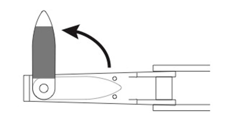 ②テコ(レバー)のみを立てて刃先方向にスライドさせ、テコを寝かせて使用します。