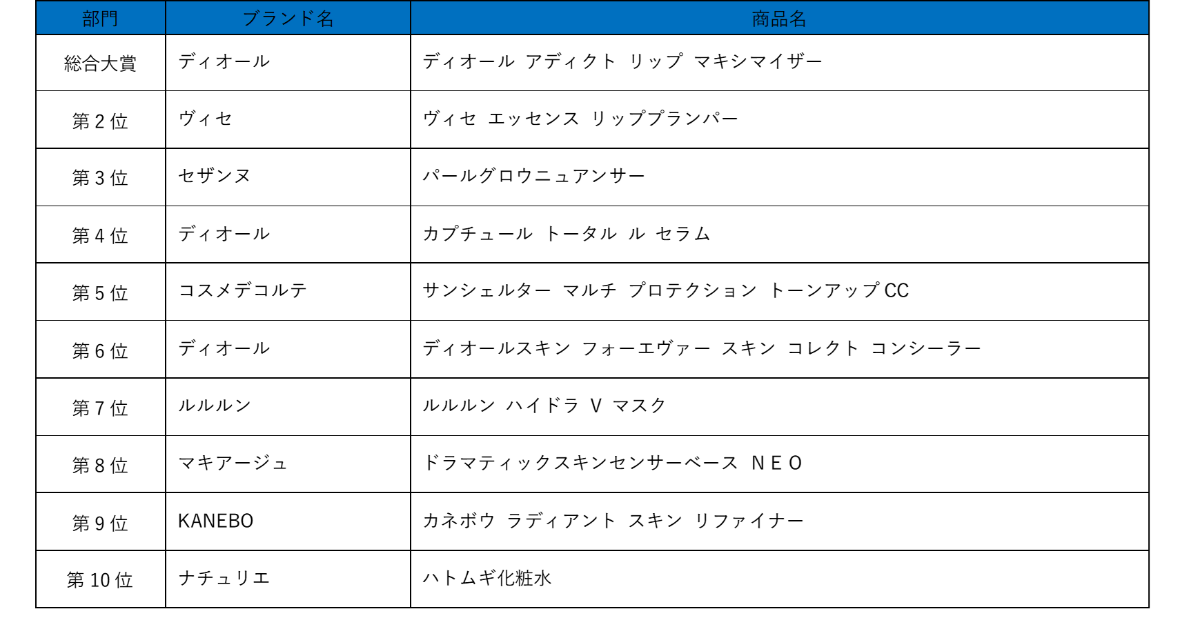 前述の通り、2023年上半期はメイク需要が本格復活した半年となりました。2023上半期新作ベストコスメ総合大賞に輝いたディオール「ディオール アディクト リップ マキシマイザー」はその象徴といえるでしょう。