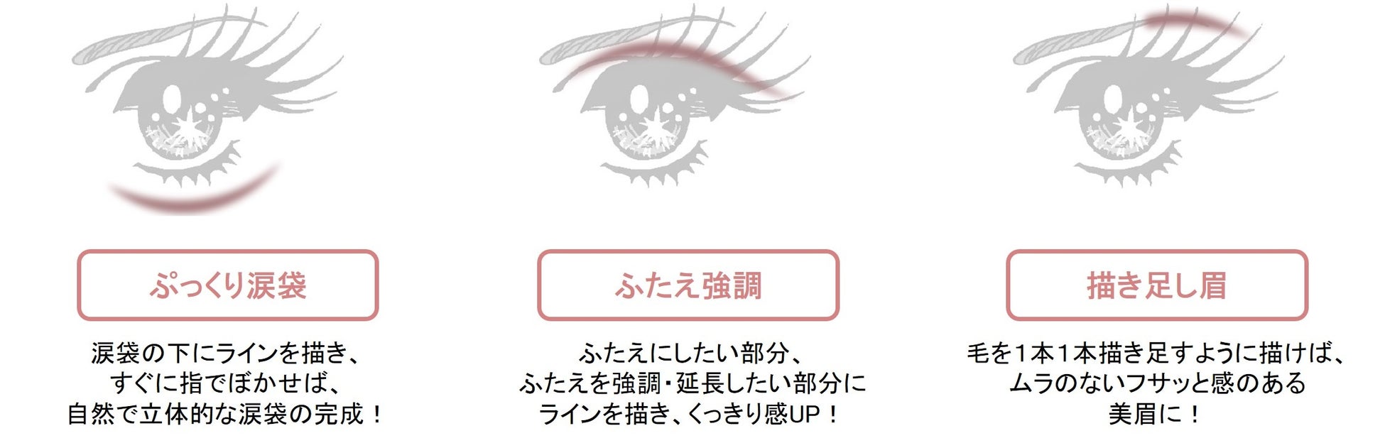 ●涙袋、ふたえライン、眉にも!描き足して目もとを強調!