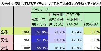 ボディソープは「家族で共用」が6割超。