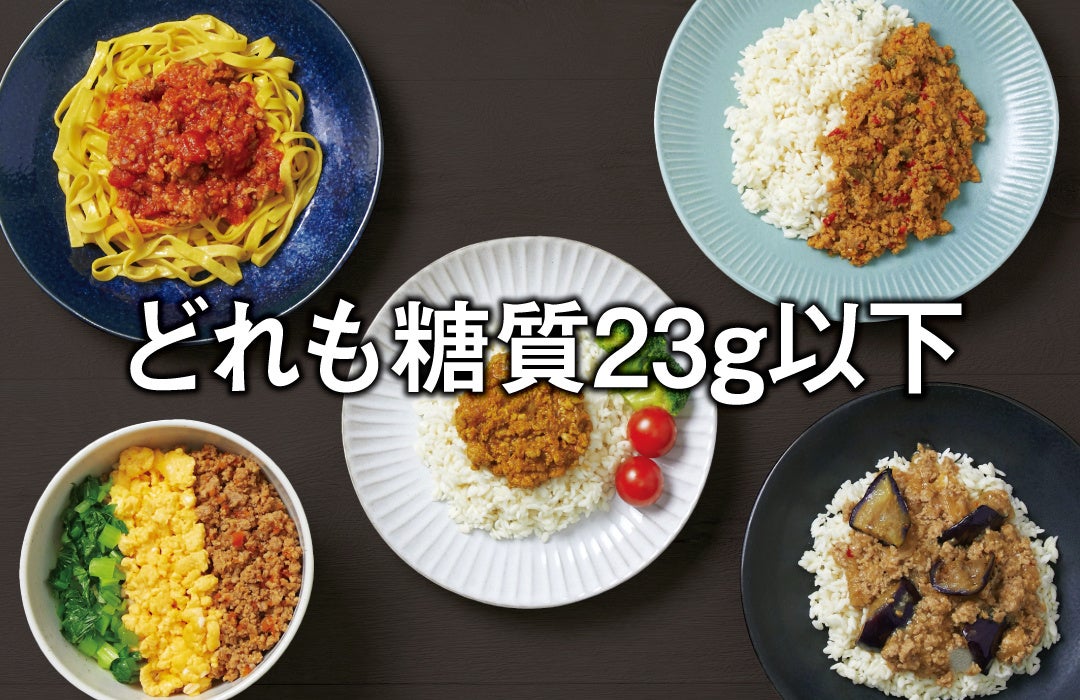 「麻婆茄子」「キーマカレー」「3色鶏そぼろ」「ガパオライス」の4種類に加え、食の楽しさをもっと味わっていただくために、「ミートソースパスタ」も合わせ、Makuake限定のお得なセットをご用意いたしました。超低糖質な上にどれも食物繊維が豊富なので、これ一品でほかの食事のリセットも。甘いものや炭水化物など糖質が多い食事に偏りがちな方や、腸活、いつもの食事から置き換えてダイエットなど、食事を楽しみながら手軽に体の内側から健康になりたい方に特におすすめです。