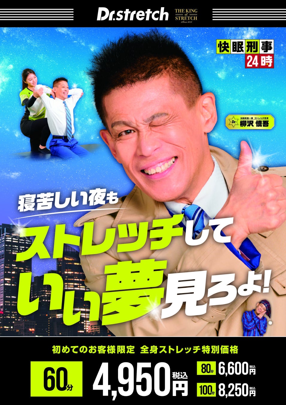 そしてこの度、Dr.stretchでは柳沢慎吾さんを起用し、梅雨で睡眠不足に悩む人々へ向けた特別企画として、ストレッチを通じて快眠へ導く「快眠刑事24時」の特別動画が解禁されました。