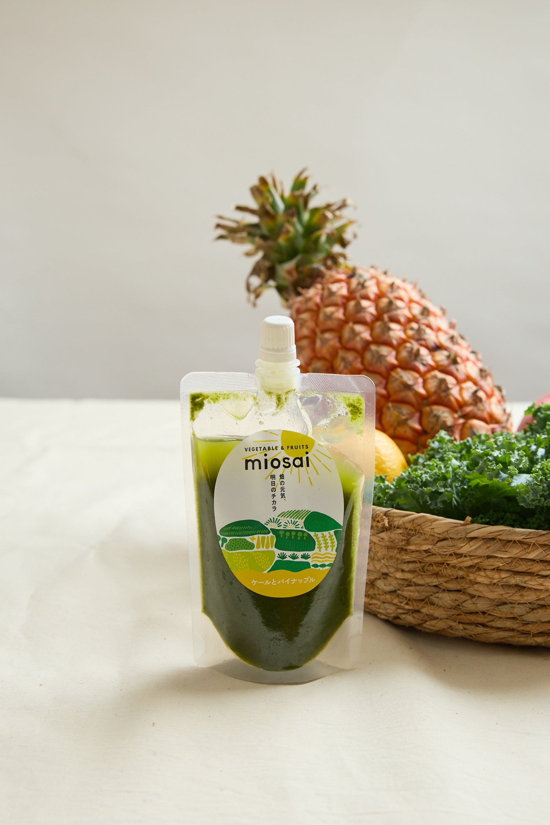 大地の恵を凝縮した野菜ジュースを提供する「miosai(ミオサイ)」から、まるで飲むサラダのようなピュレ「ケールとパイナップル」が新登場。