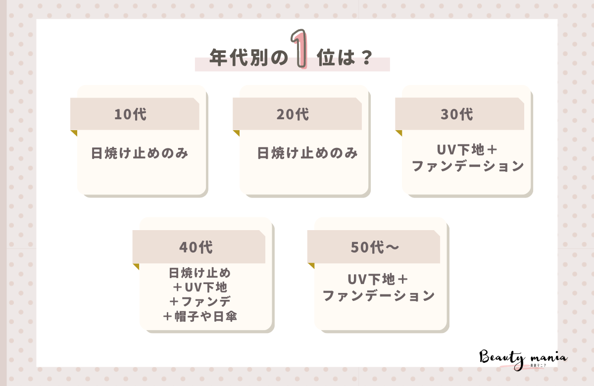 40代の1位『日焼け止め+UV下地+ファンデーション+帽子や日傘』