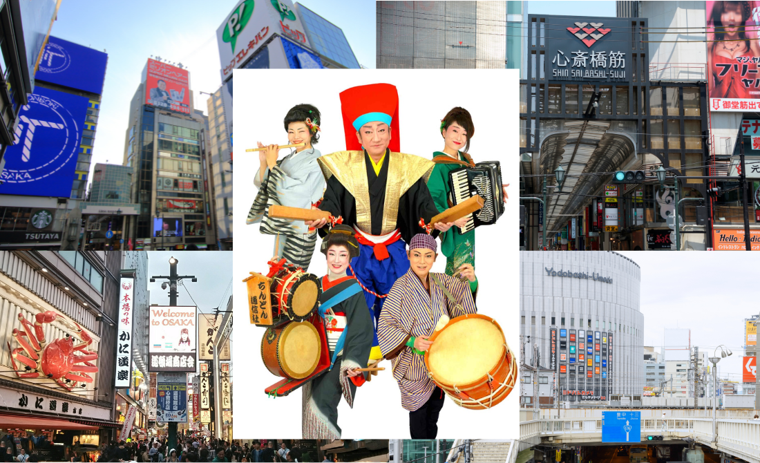 ちんどん屋一行が、太鼓を叩きながらチラシを配り歩くので、大阪がいつも以上に賑やかに盛り上がること、間違いなし!