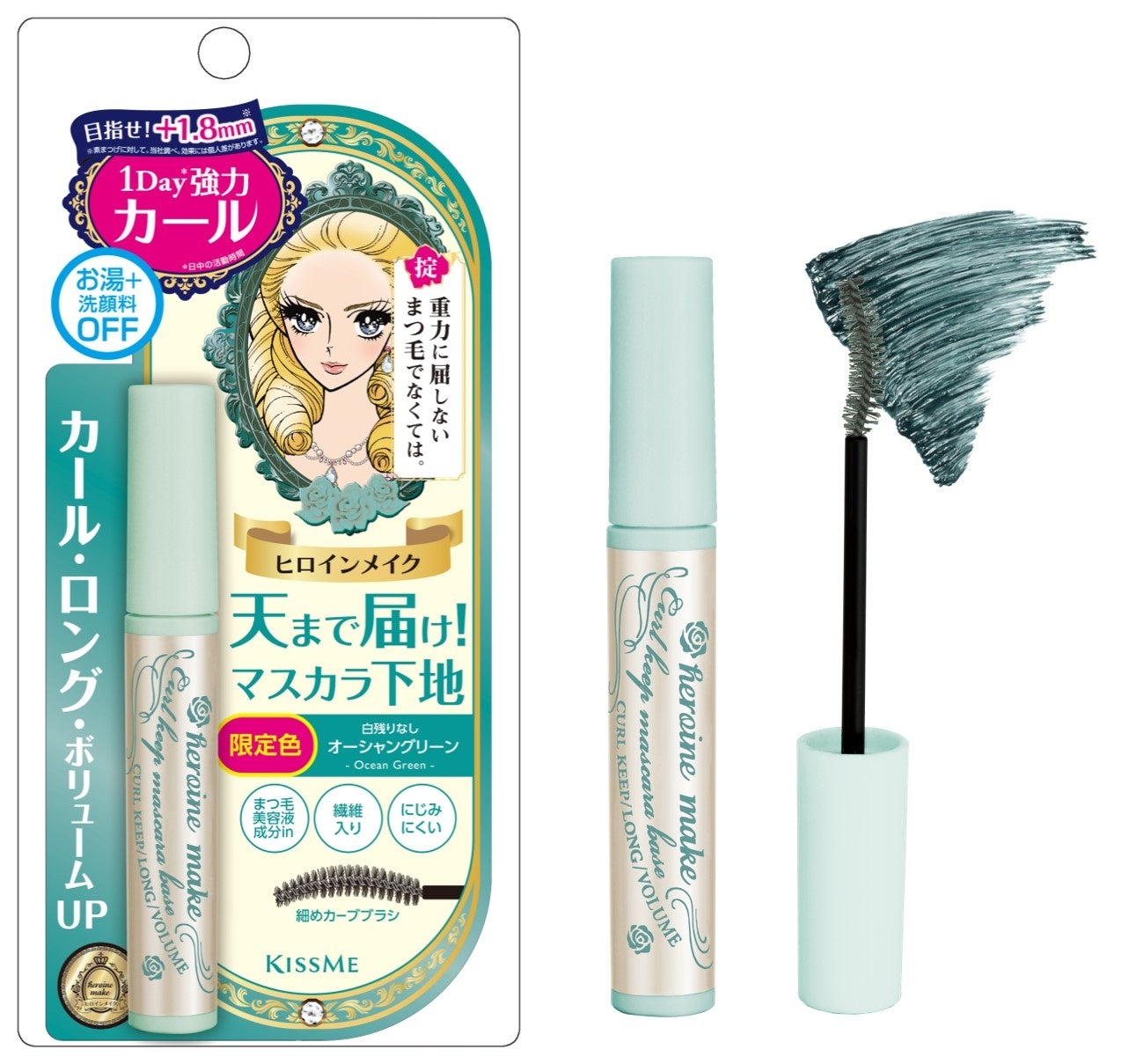 1日中※1上向きロングまつ毛を叶える大人気マスカラベースから、隠しグリーンでこなれ感をUPする「オーシャングリーン」が数量限定発売。
