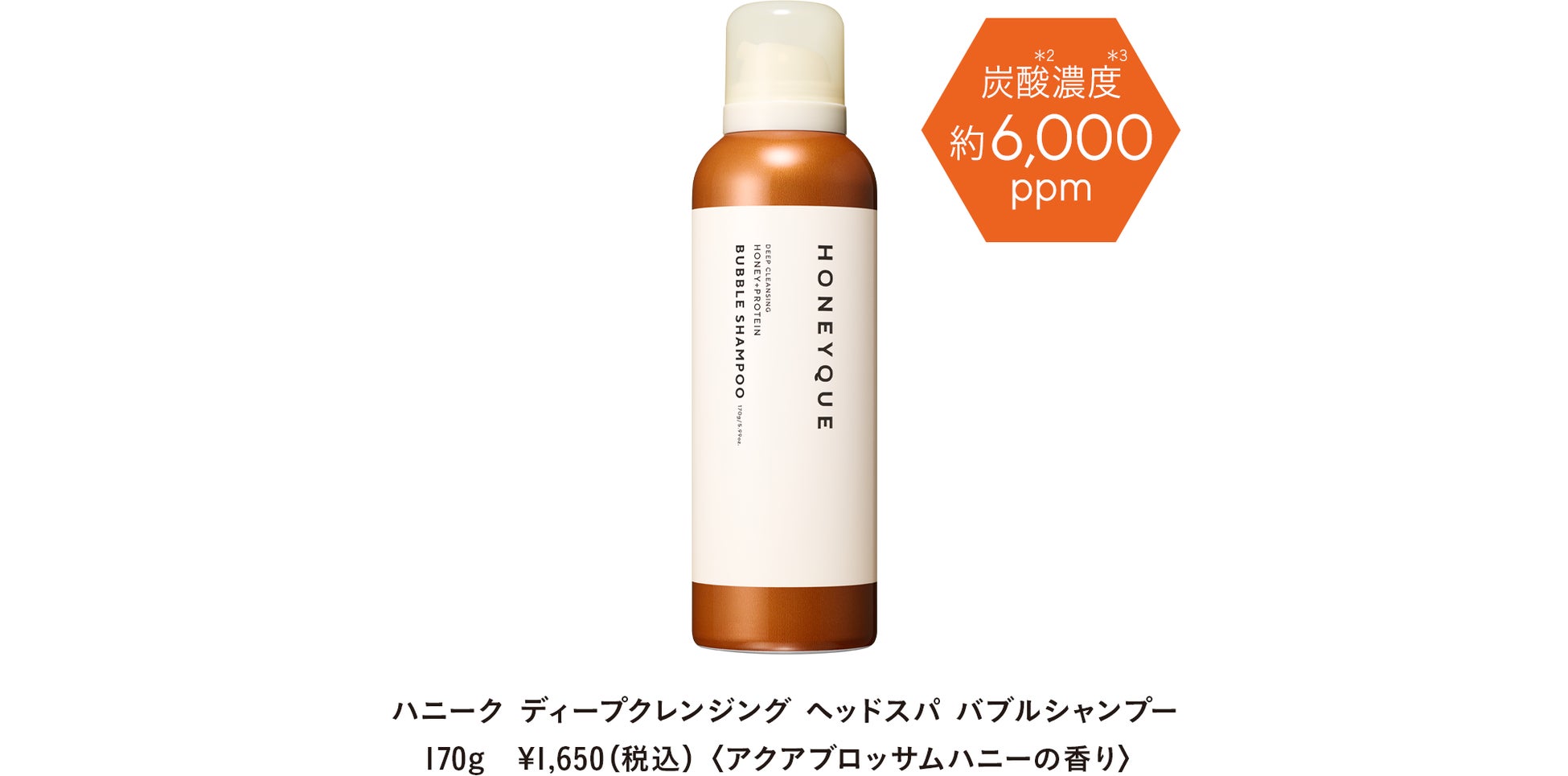 ボトルワークス株式会社は、はちみつ*¹配合で”毛先まで素直にまとまる蜜髪”へ導くヘアケアブランド「HONEYQUE(以下、ハニーク)」から、週1~2回の炭酸*²ヘッドスパで、自宅で本格リフレッシュができる「ハニーク ディープクレンジング ヘッドスパ バブルシャンプー」を発売いたします。