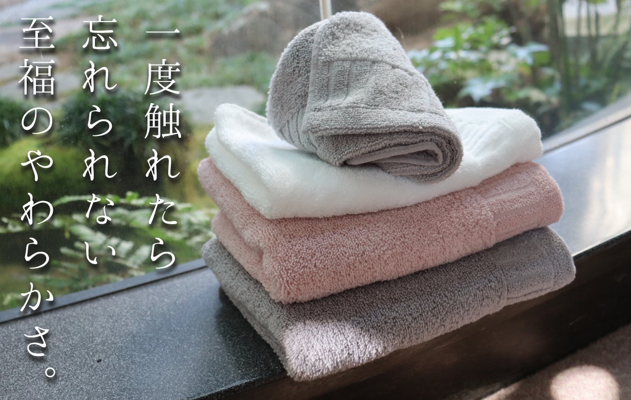 ・タイトル:手が沈むほど柔らかい。髪も肌も喜ぶタオルを追求、糸から開発。至福のフェイスタオル