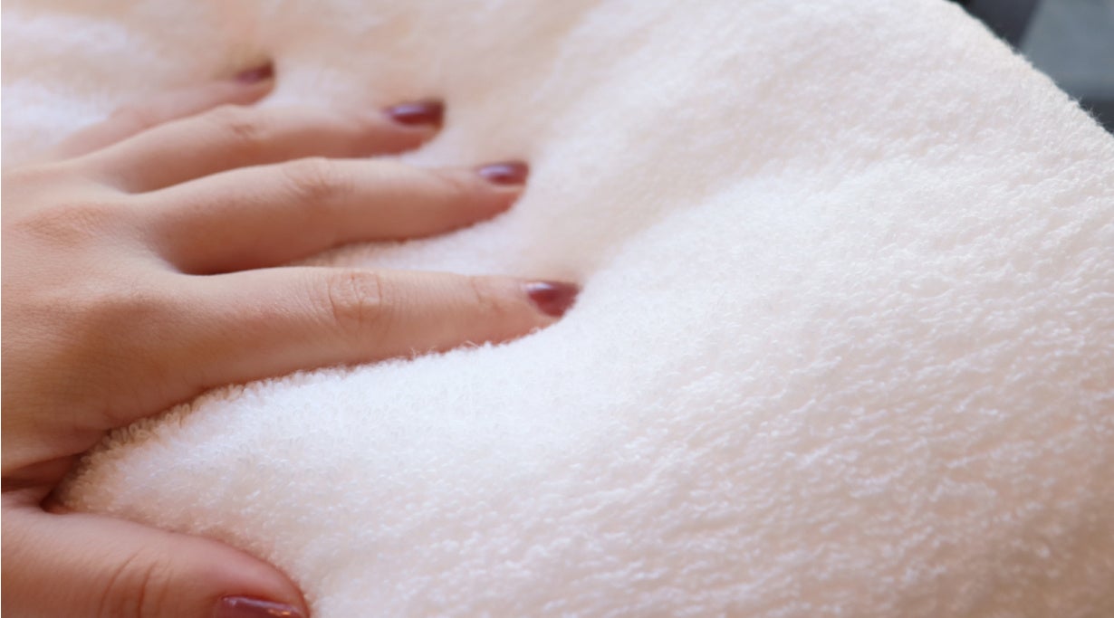 ・タイトル:手が沈むほど柔らかい。髪も肌も喜ぶタオルを追求、糸から開発。至福のフェイスタオル