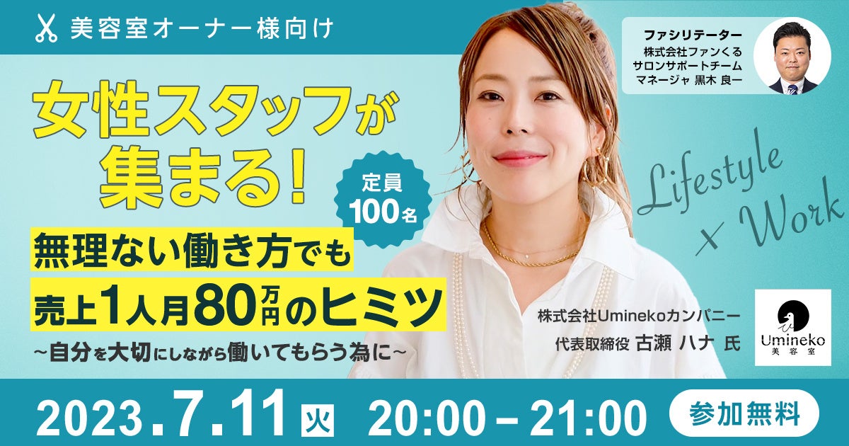 なぜこのような働き方を実現しながら好調な経営が維持できるのか、今回はUmineko美容室のヒミツと、そこに至った経緯をオーナーの古瀬ハナさんからうかがいます。是非ご参加ください。