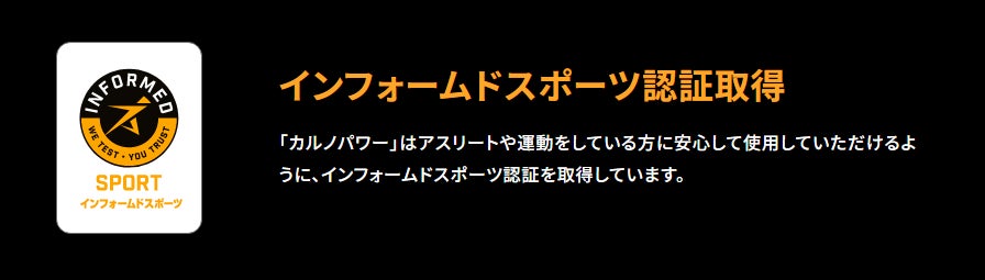 スポーツ界のプロフェッショナル達にこそ使ってほしいという思いから、従来品と同様にアスリートを守るための世界最大のアンチ・ドーピング認証「インフォームドスポーツ」も取得しています。