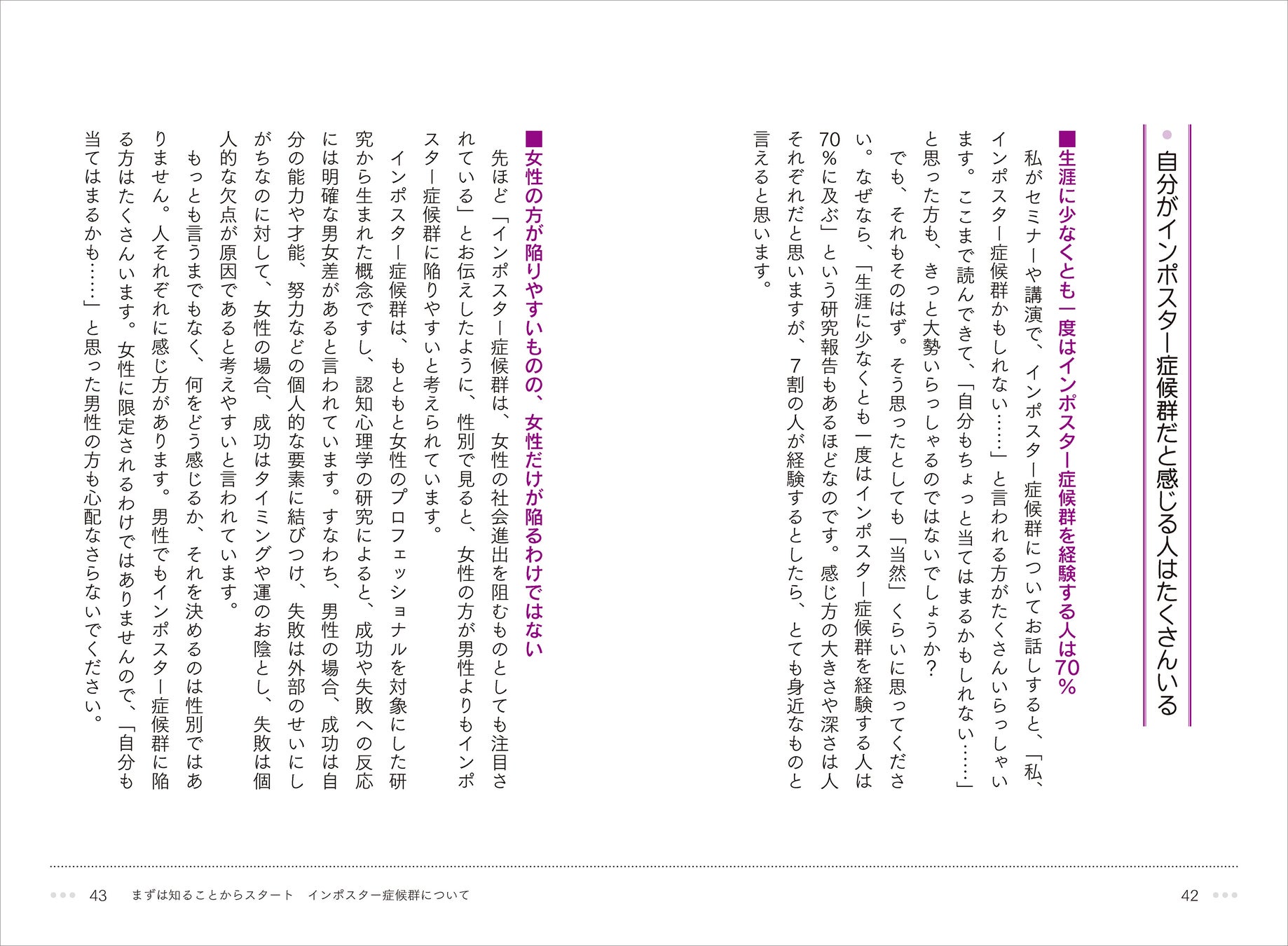 カウンセラーとして、たくさんのクライエントの相談に応じてきた経験をベースに、数々のセミナーや講演で語られてきたインポスター症候群に関する集大成とも言える内容が、本書にぎっしり詰め込まれています。