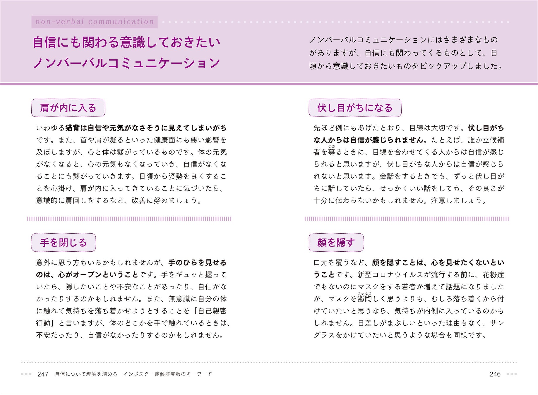 本書は、各種メディアでも活躍している公認心理師の小高千枝先生が、インポスター症候群の基本的な知識から克服に繋がるヒントまでを余すことなく書き切ったものです。