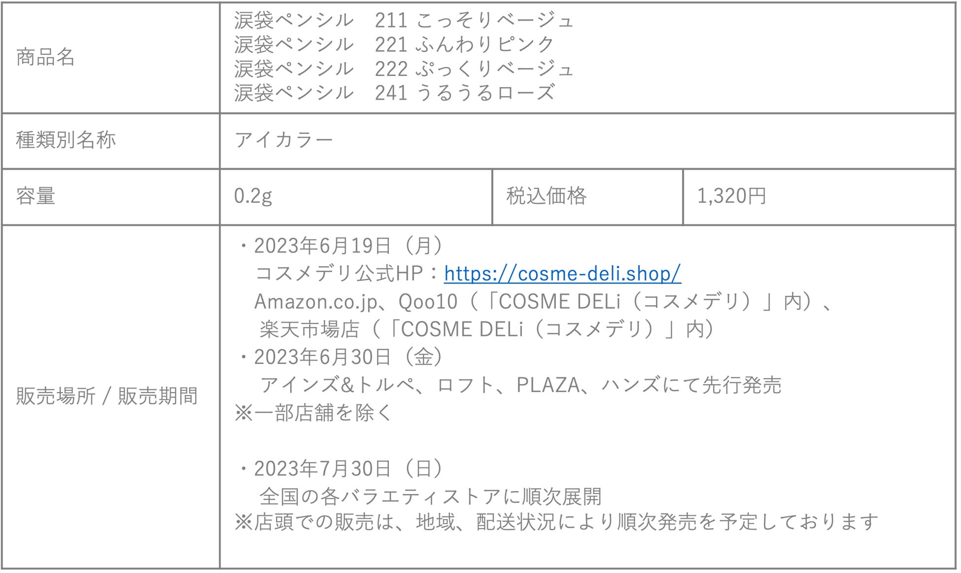 第一弾は、ドリーミー グリッターライナー・涙袋ペンシル・4カラー ミニアイパレット・ジェルハイライトの4アイテムを発売します。