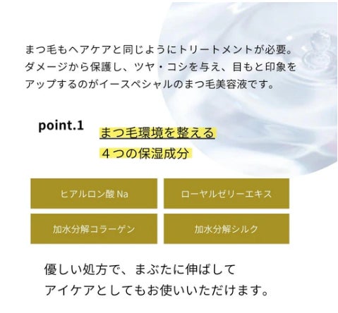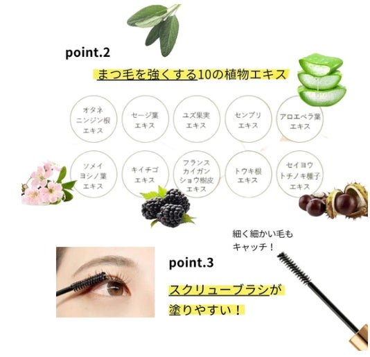 まつ毛環境を整える4つの保湿成分、生命力溢れる10の植物由来の整肌成分を配合。