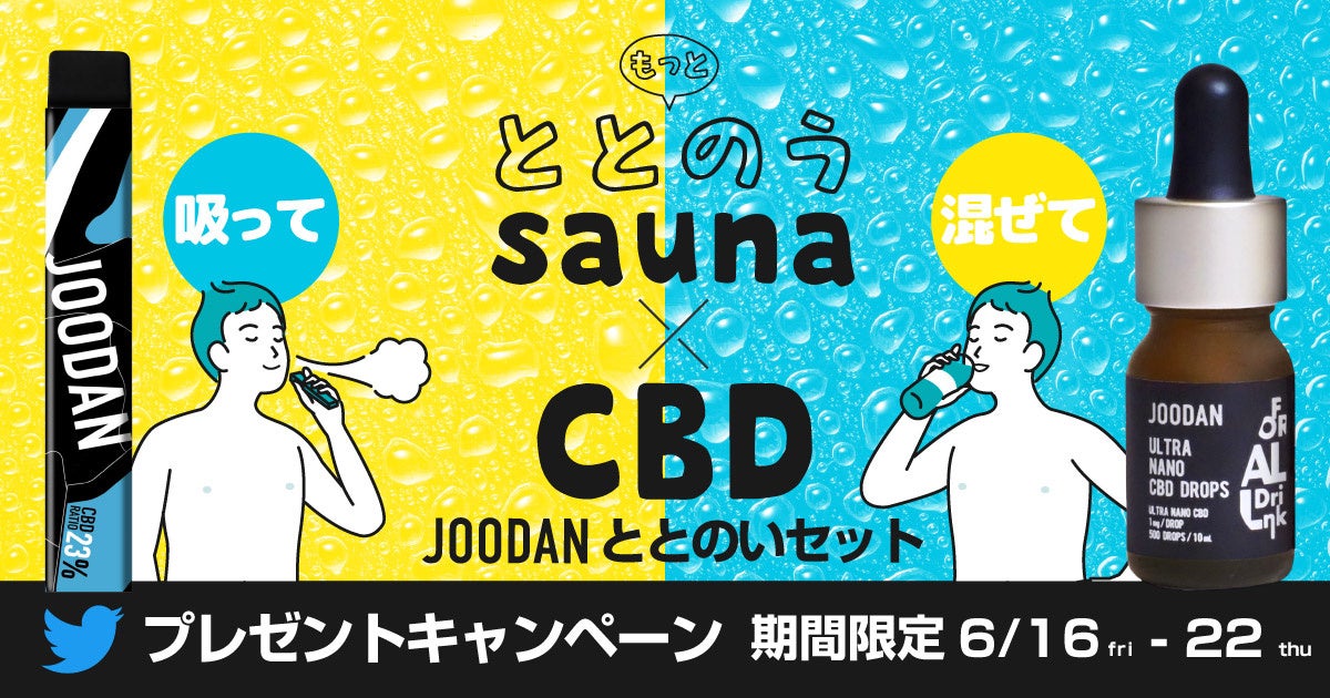 6月23日の発売にあわせ、「JOODAN CBD」Twitterアカウントで、抽選で5名様に「JOODAN CBD ととのいセット」があたるフォロー&リツイートキャンペーンを実施いたします。当選できなかった方にも「ととのいセット」購入の際に使用できる半額クーポンをプレゼントいたします!なお、お得に本セットが手に入るキャンペーンの実施は6月22日まで。6月23日からの本セットの発売時からクーポンを使用することができます。サウナにJOODAN CBDをとりいれることで、今までにない極上のととのい体験が得られます。
