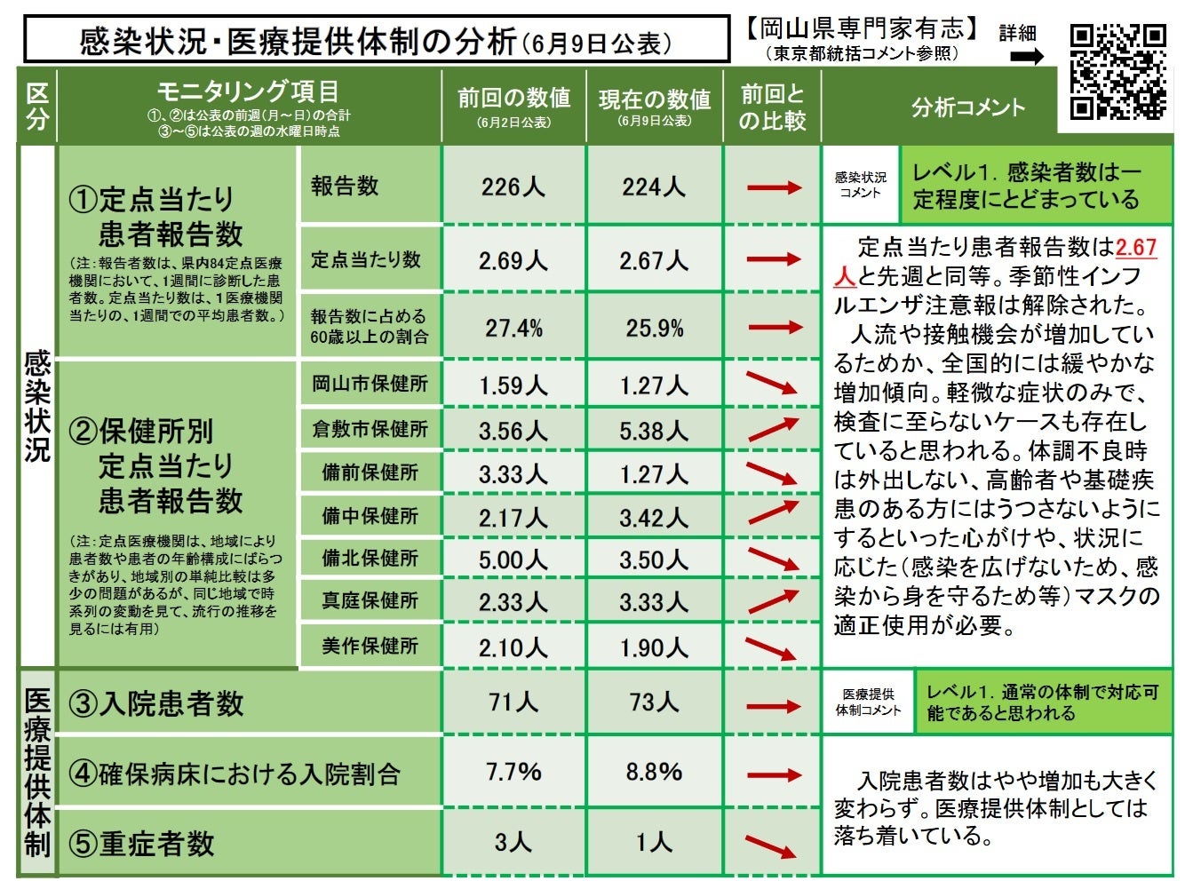 ◆感染状況・医療提供体制の分析〔2023年 6月 9日(金)現在〕